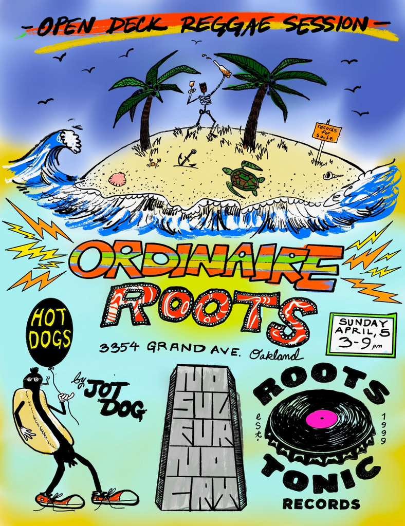 You know the program: Roots and Reggae in the shop and on the sidewalk all afternoon. Jot Dog will be grilling hot dogs. Bring your friends, bring your kids, bring your puppies ( outside only :), bring your dancing shoes. Weather going to be perfect. Let’s have some fun!